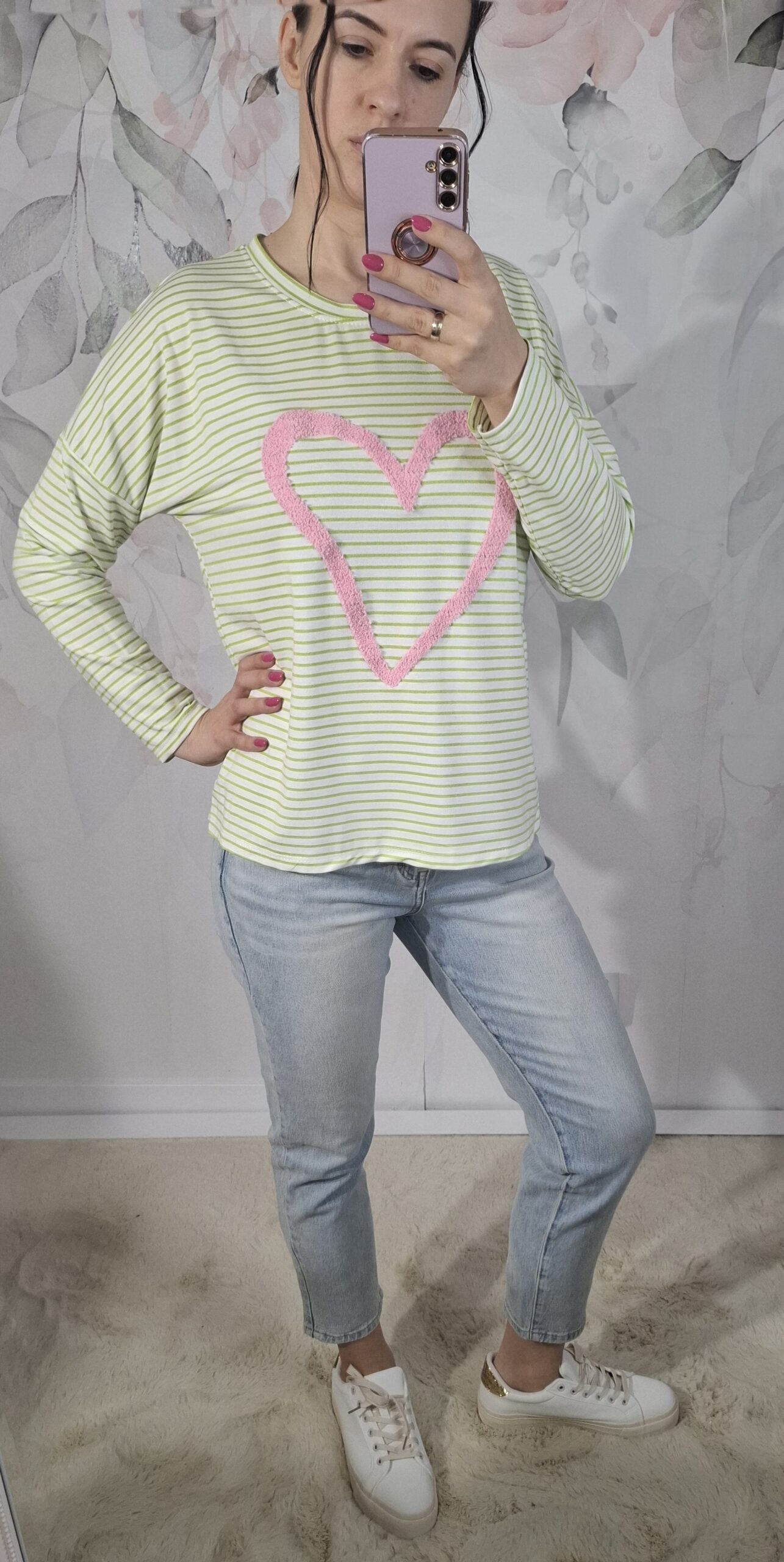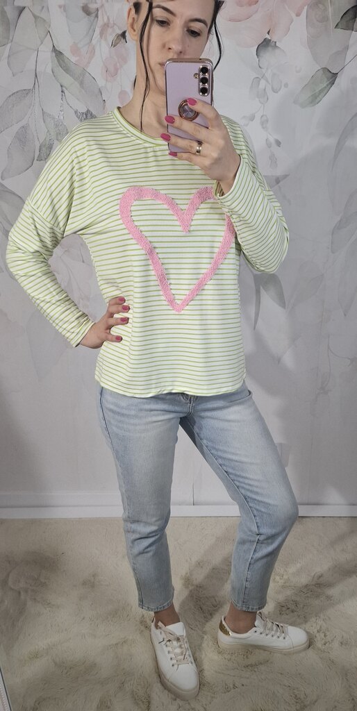 Ta urocza bluzka w paski łączy klasyczny wzór z delikatnym serduszkiem, tworząc modny i wygodny element garderoby. Wykonana z wysokiej jakości bawełny, jest lekka, przewiewna i idealna na każdą porę roku.
