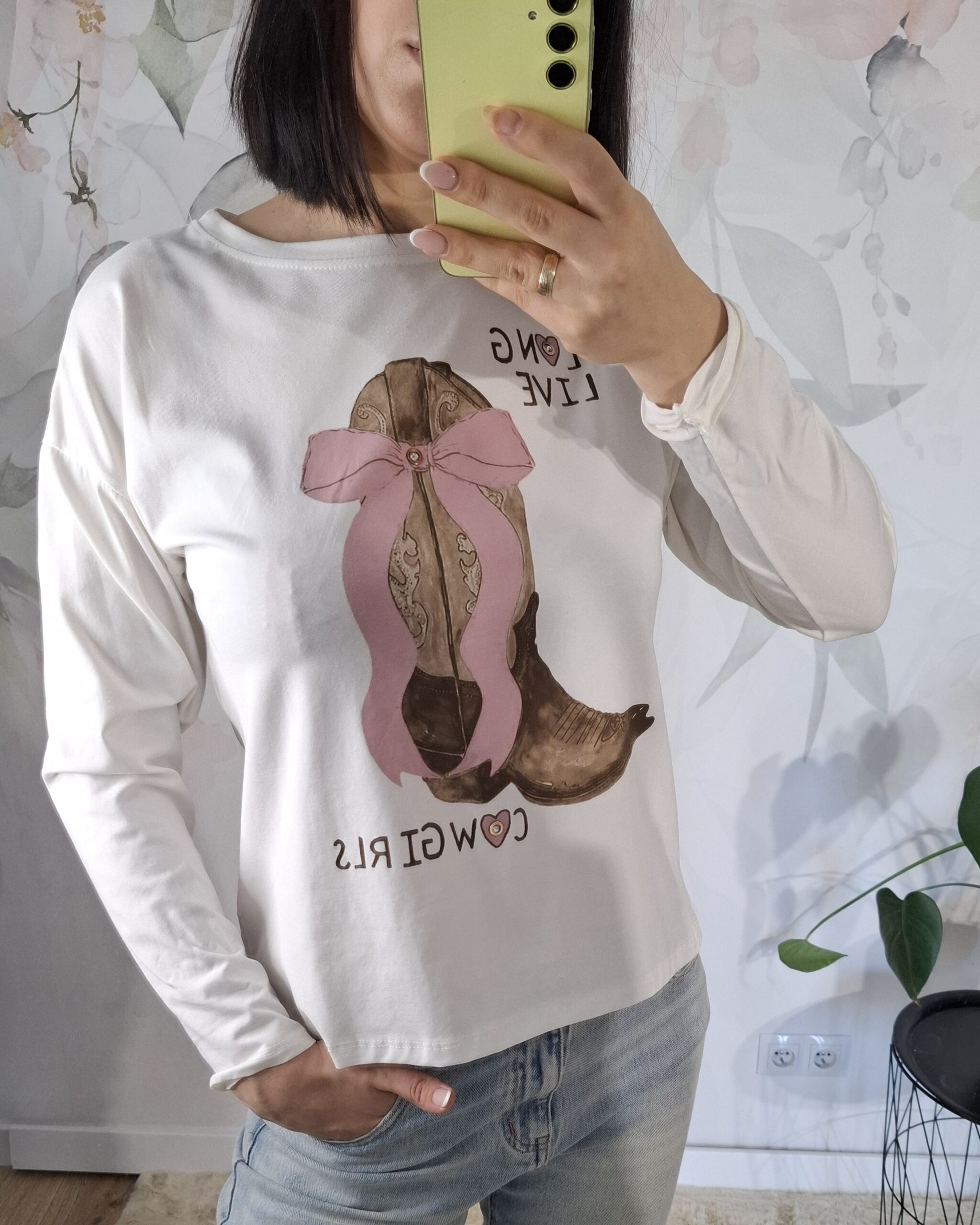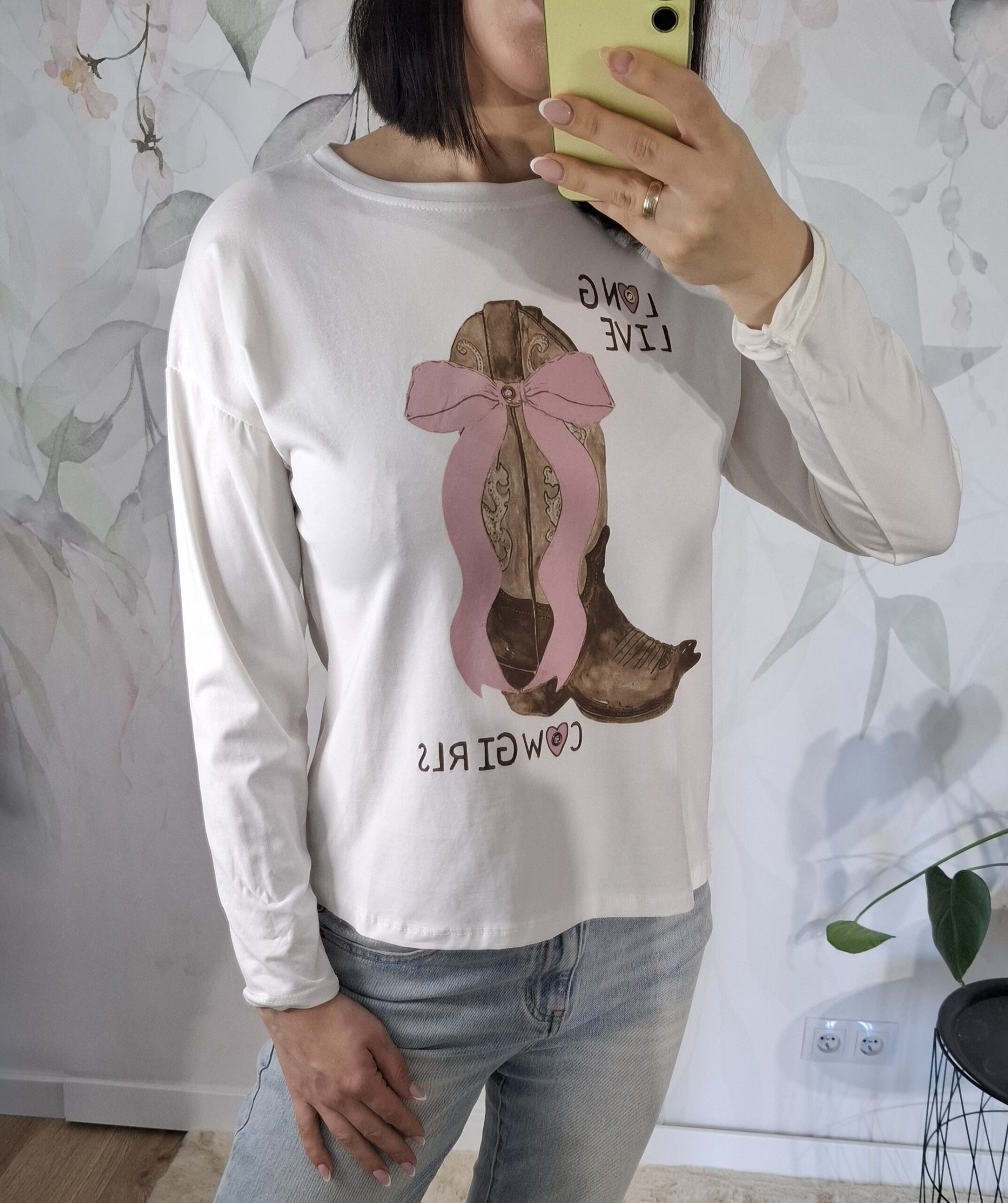 Biała bluzka Premium z długim rękawem i zdobieniem w kształcie buta 👢✨