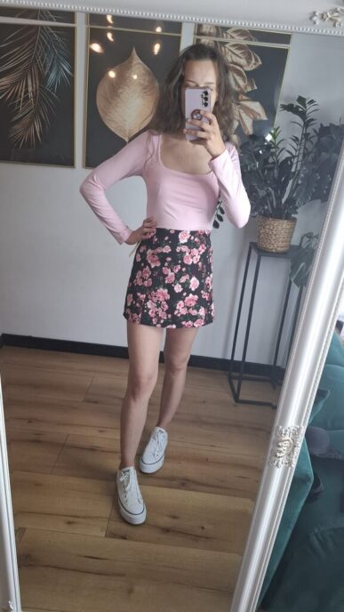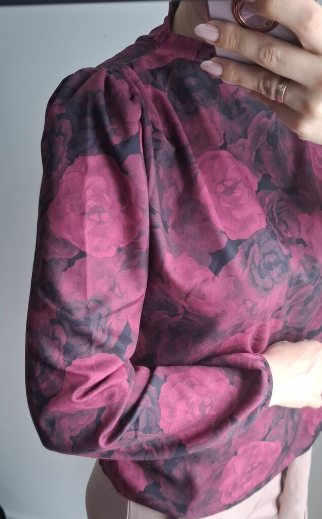 Stylowa bluzka w piękny kwiatowy wzór róży, która doda uroku każdej stylizacji. Wykonana z wysokiej jakości materiału, zawierającego 30% wiskozy, co sprawia, że jest wyjątkowo przyjemna w dotyku i przewiewna. Długie rękawy zapewniają komfort i ciepło, idealna na chłodniejsze dni. Produkt w intensywnym kolorze fuksji, który doskonale komponuje się z wieloma innymi barwami.