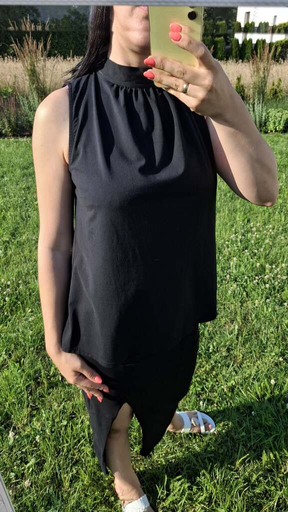 Sprzedam nową, stylową bluzkę w kolorze jasnoszarym z efektownym wiązaniem na plecach. Model bez rękawów, z delikatnie marszczonym dekoltem i luźnym, komfortowym krojem. Materiał jest przyjemny w dotyku, lekko elastyczny i oddychający – idealny na cieplejsze dni.