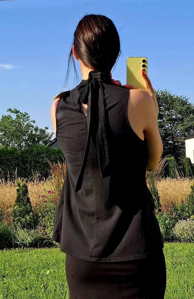 Bluzka wiskozowa z wiązaniem z tyłu czarna