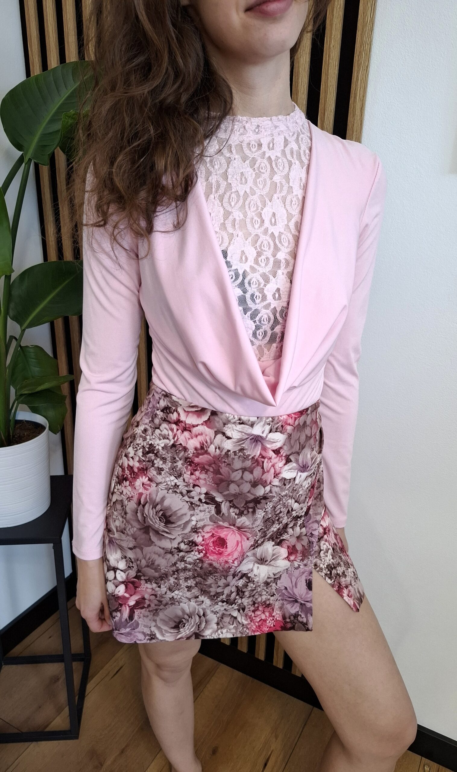 Elegancka bluzka z długim rękawem, wykonana z lekkiego, przyjemnego materiału. Model z dekoltem typu woda, który pięknie układa się przy szyi, oraz delikatną koronką dodającą kobiecego uroku.