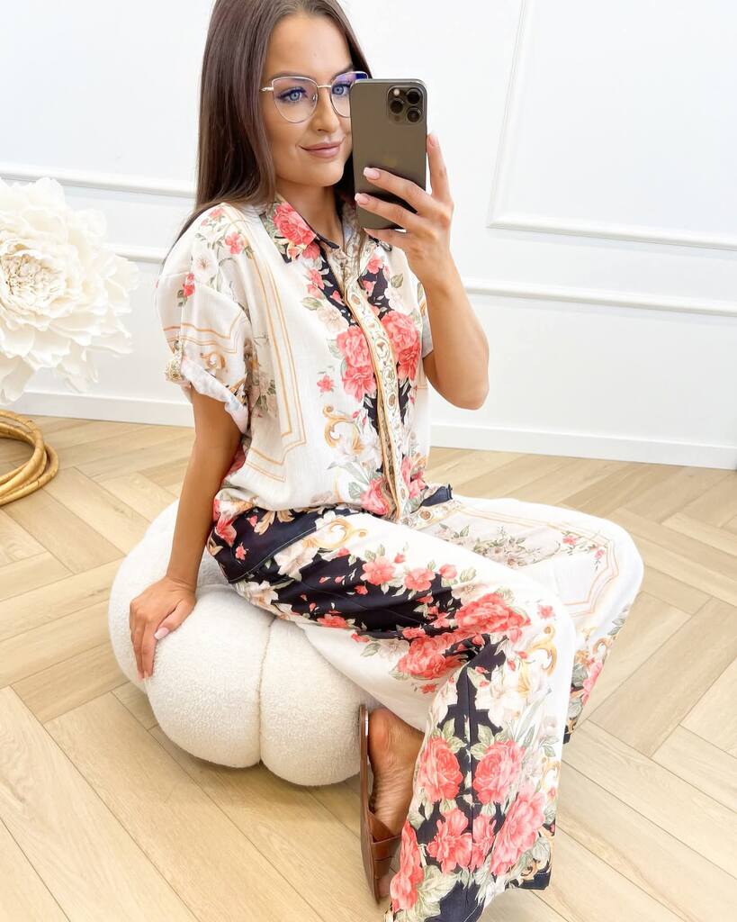 Ten uroczy zestaw to idealny wybór na ciepłe dni! Składa się z wysokiej jakości tkanin: 30% len, 40% wiskoza i 30% bawełna, co zapewnia komfort i przewiewność. Delikatny, kwiatowy wzór dodaje mu romantycznego charakteru i świetnie sprawdzi się na co dzień oraz na specjalne okazje. Lekki i przyjemny w dotyku, komplet Garden to must-have dla miłośniczek stylu boho i naturalnego looku.