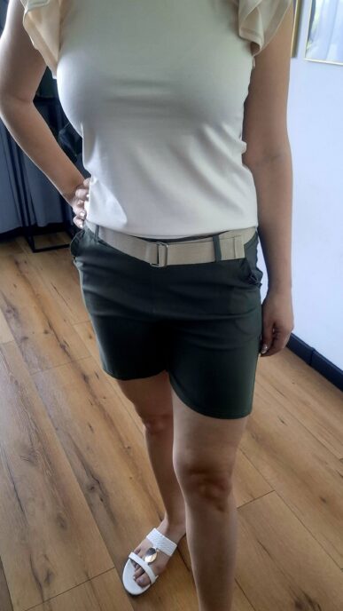 Spodnie na gumce, uciągliwe. Mają boczne kieszonki , z tyłu gładkie.