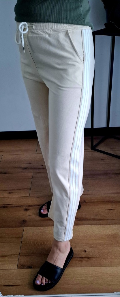 Kremowe spodnie dresowe z lampasem