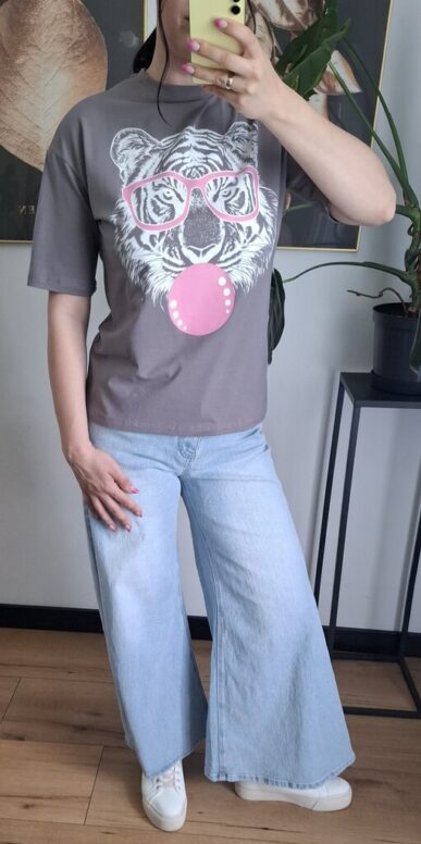 Świetnie wygląda zarówno z jeansami, jak i eleganckimi spodniami czy spódnicą.