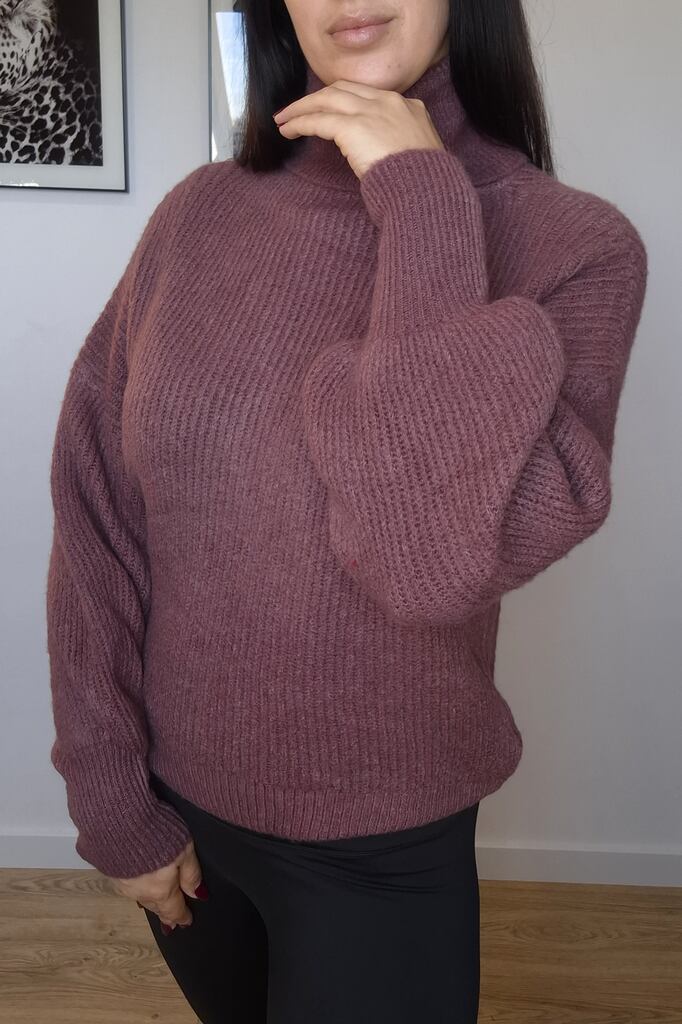 Miękki sweter Vanessa z golfem –jagoda