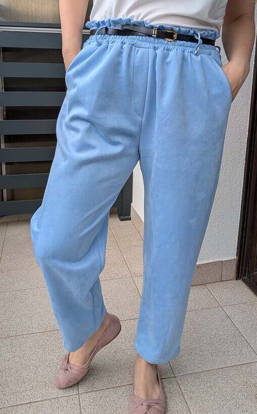 Pastelowe spodnie z paskiem błękit
