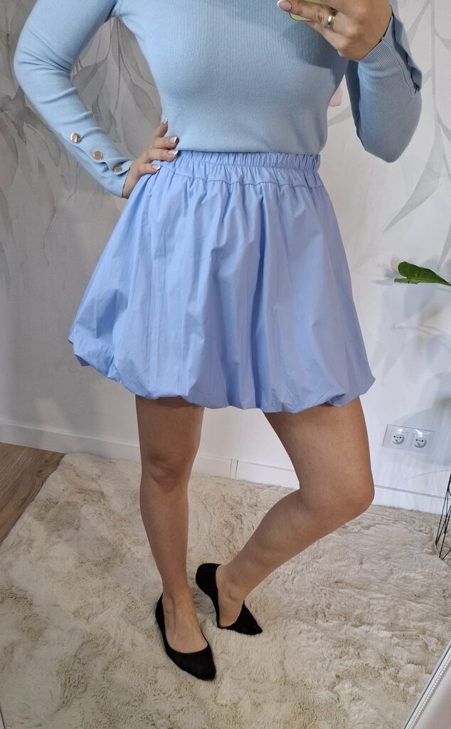 🌸 Urocza i stylowa niebieska mini o rozkloszowanym kroju.