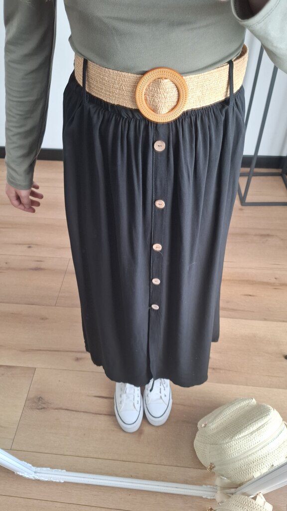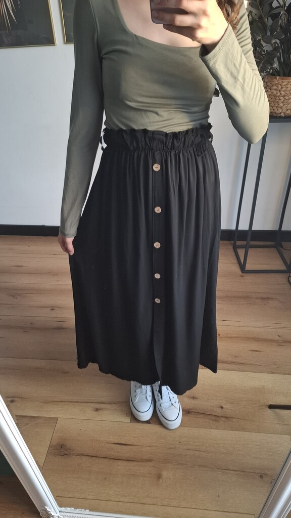 Stylowa i kobieca spódnica, która łączy wygodę z elegancją! Wykonana z wysokiej jakości mieszanki 50% lyocelu i 50% wiskozy, jest lekka, przewiewna i pięknie układa się na sylwetce. Długi fason, ozdobne guziki i pasek w talii nadają jej modnego charakteru. ✨