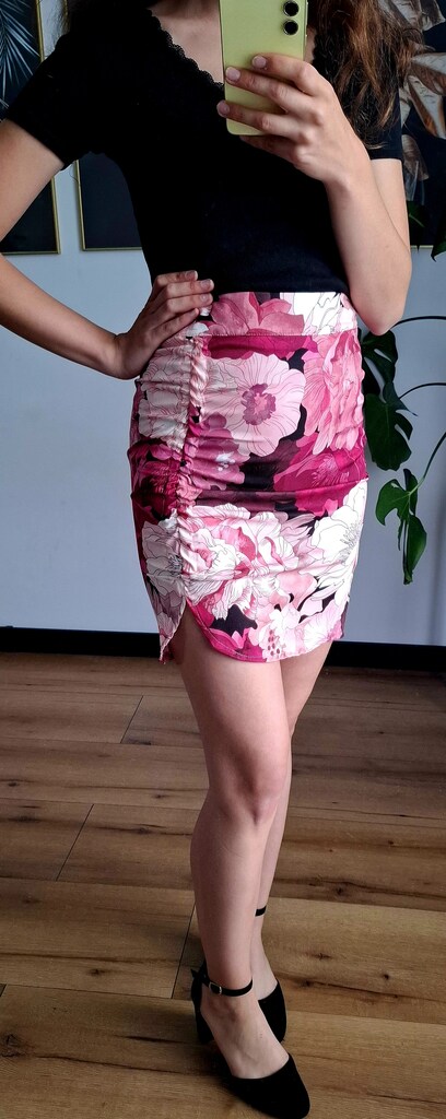 Urocza mini spódniczka w kwiatowy wzór, utrzymana w delikatnych odcieniach różu. Uszyta z lekkiej i przewiewnej wiskozy, idealnie sprawdzi się na lato. Zwiewny krój pięknie układa się w ruchu, a kwiatowy print dodaje świeżości i dziewczęcego uroku.