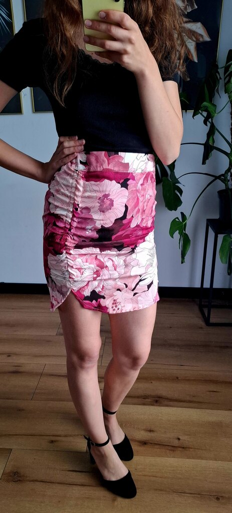 Kwiatowa mini spódnica z wiskozy – różowa, lekka i kobieca