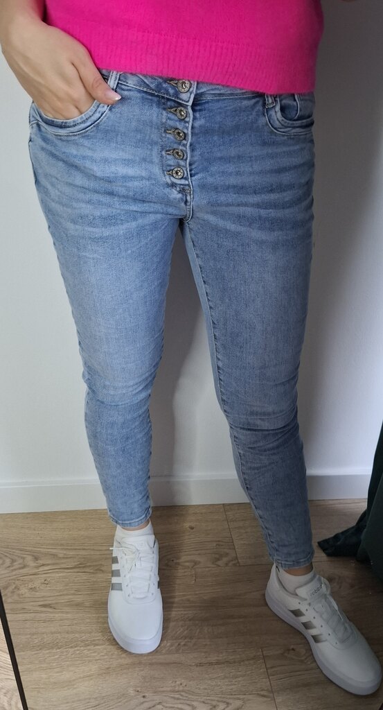 Jeansy obcisłe z guzikami i marszczeniami to modny wybór, który łączy klasykę z ciekawymi detalami. Dzięki dopasowanemu fasonowi oraz dekoracyjnym marszczeniom spodnie te świetnie podkreślają sylwetkę, dodając jej wyrazistości i nowoczesności.