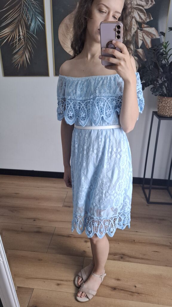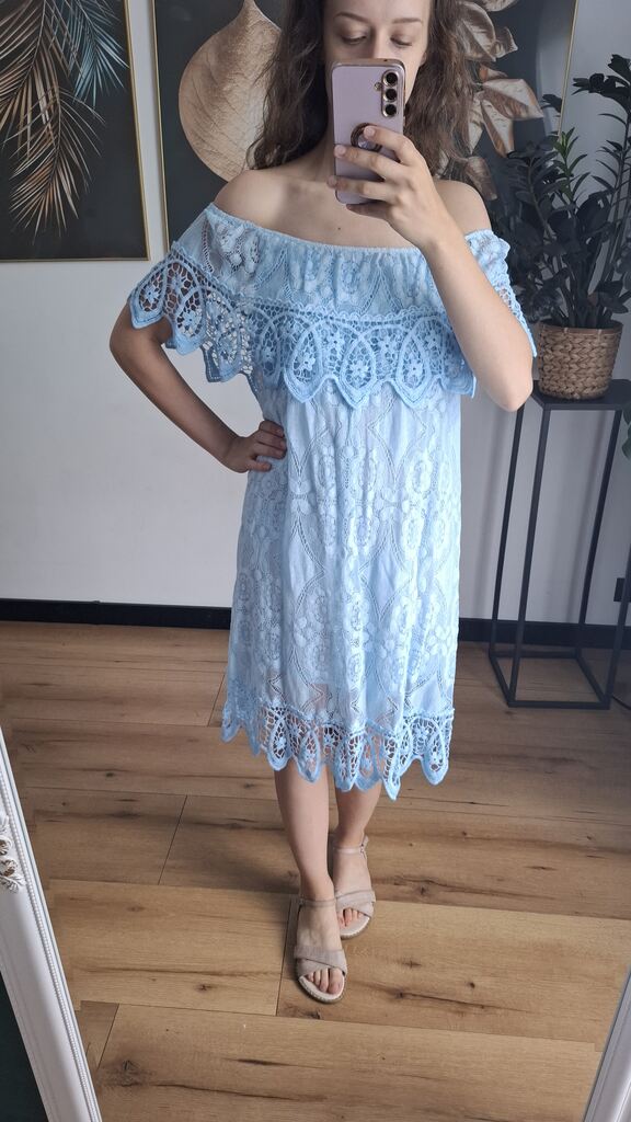 ✨ Sukienka Hiszpanka Koronkowa – Błękitna ✨