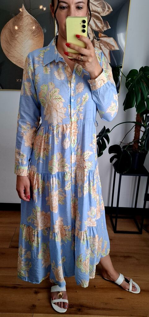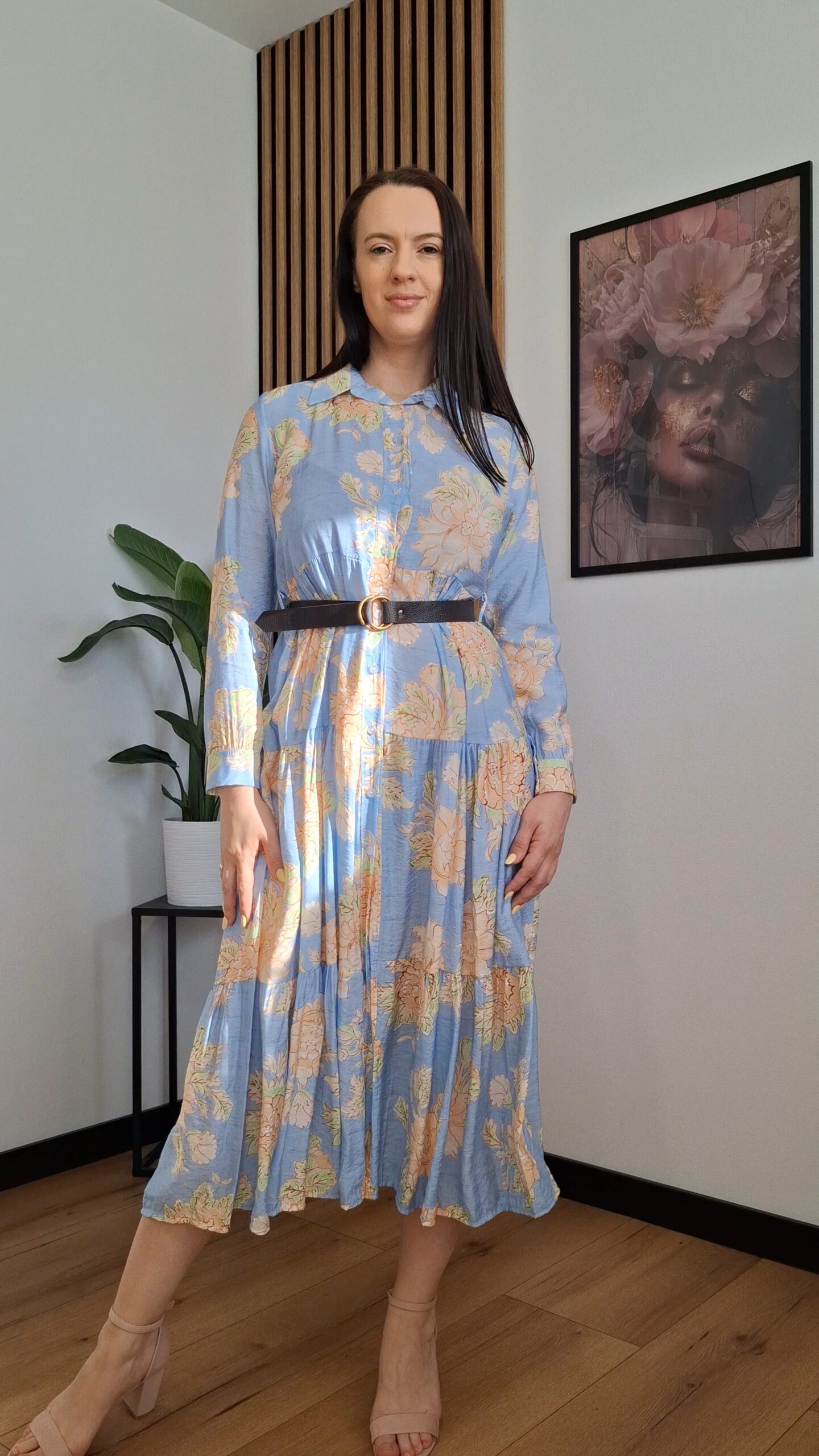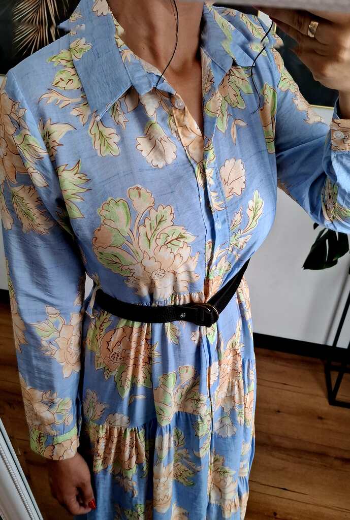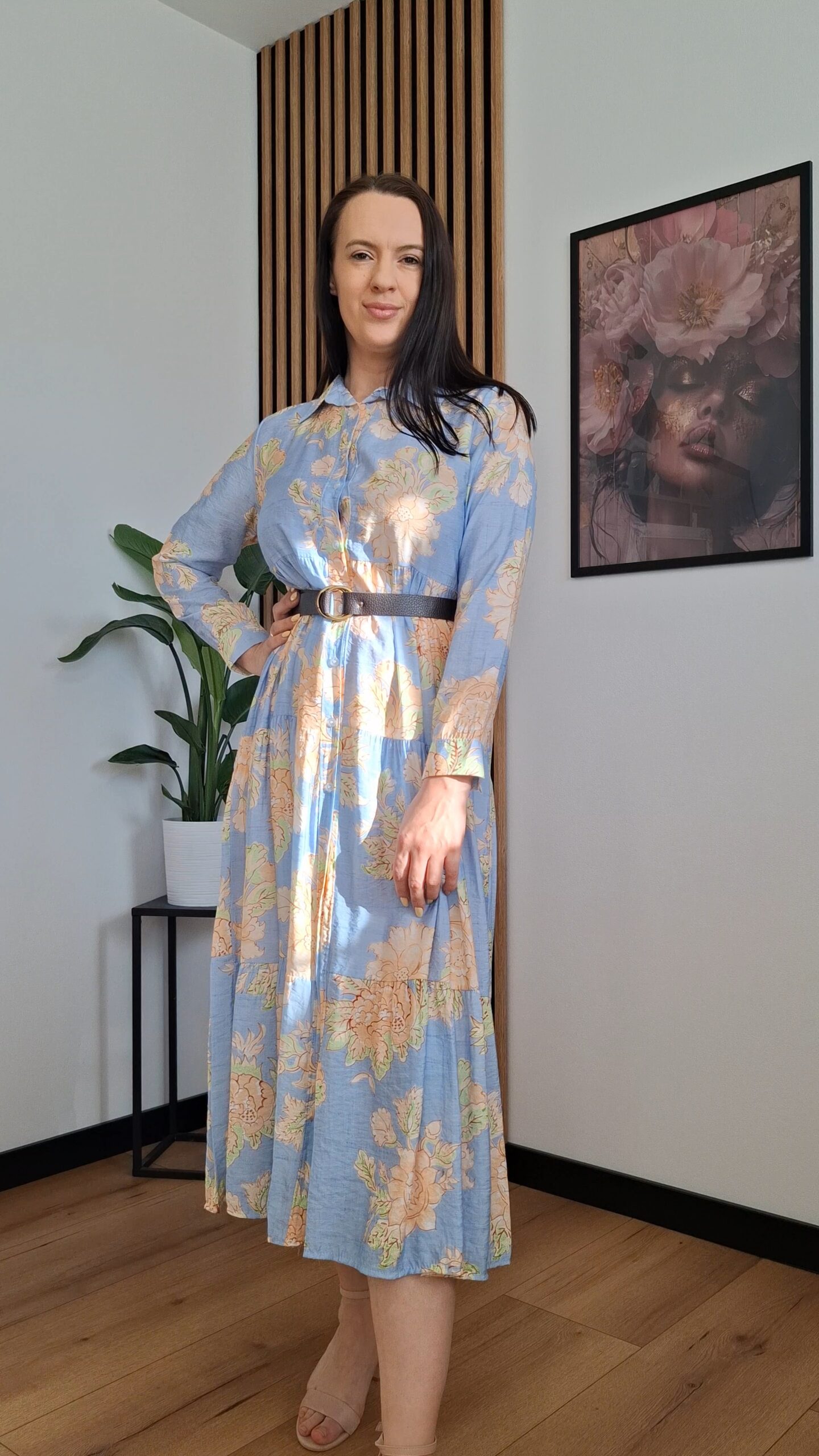 🌺 Długa sukienka z kwiatowym printem i paskiem w talii