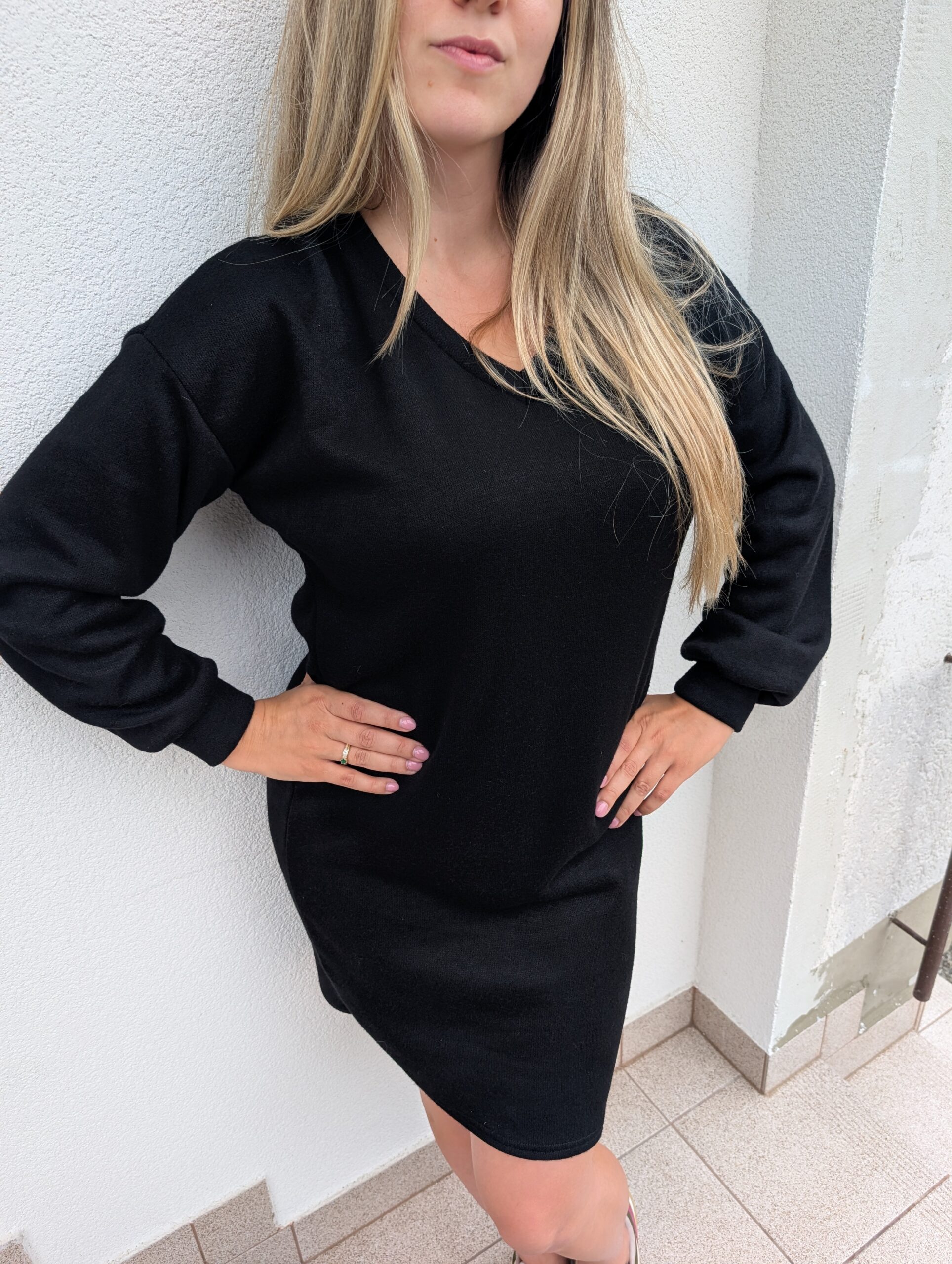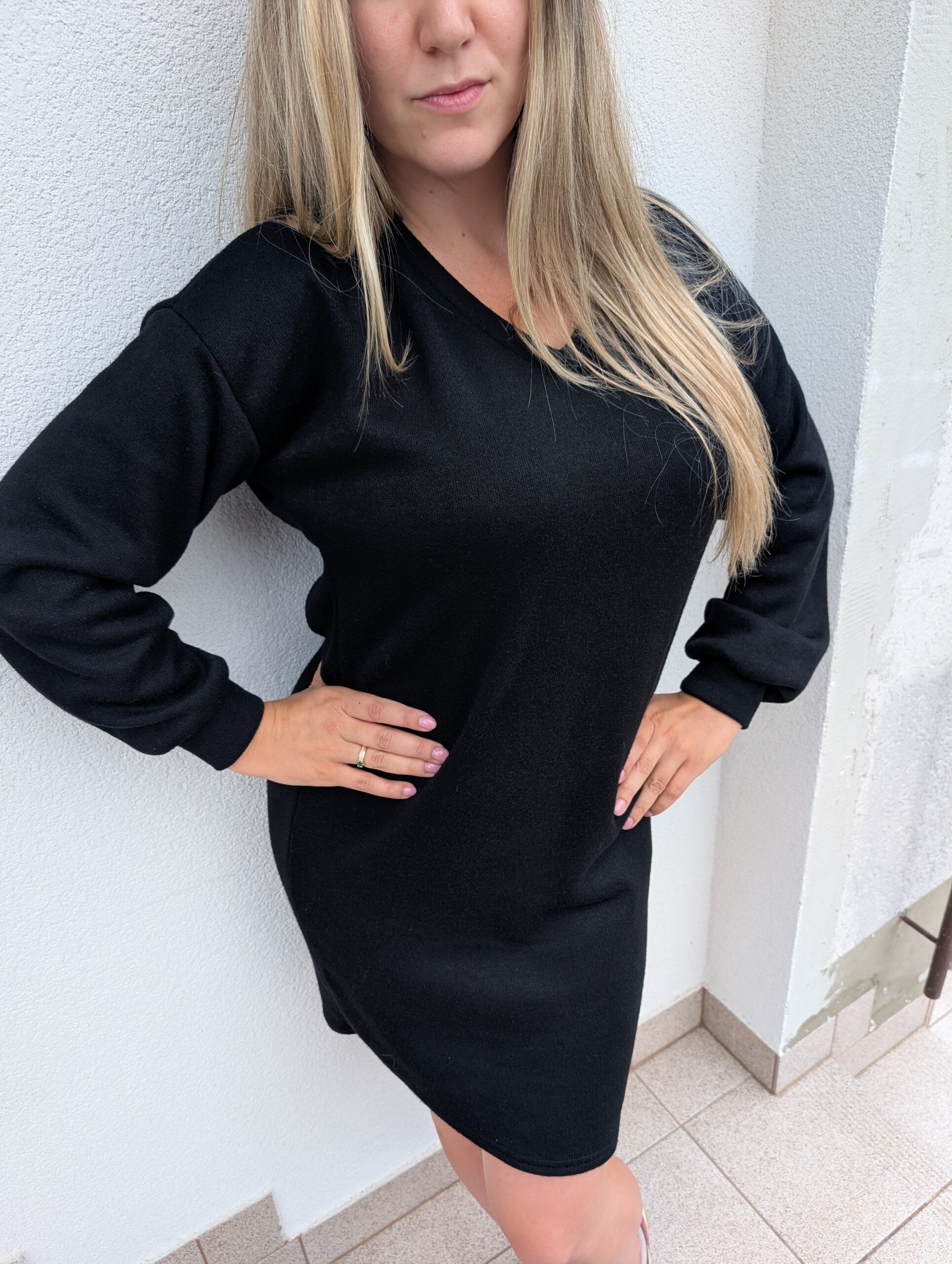Napisz pierwszą opinię o „Sukienka sweterkowa w serek – czarna”