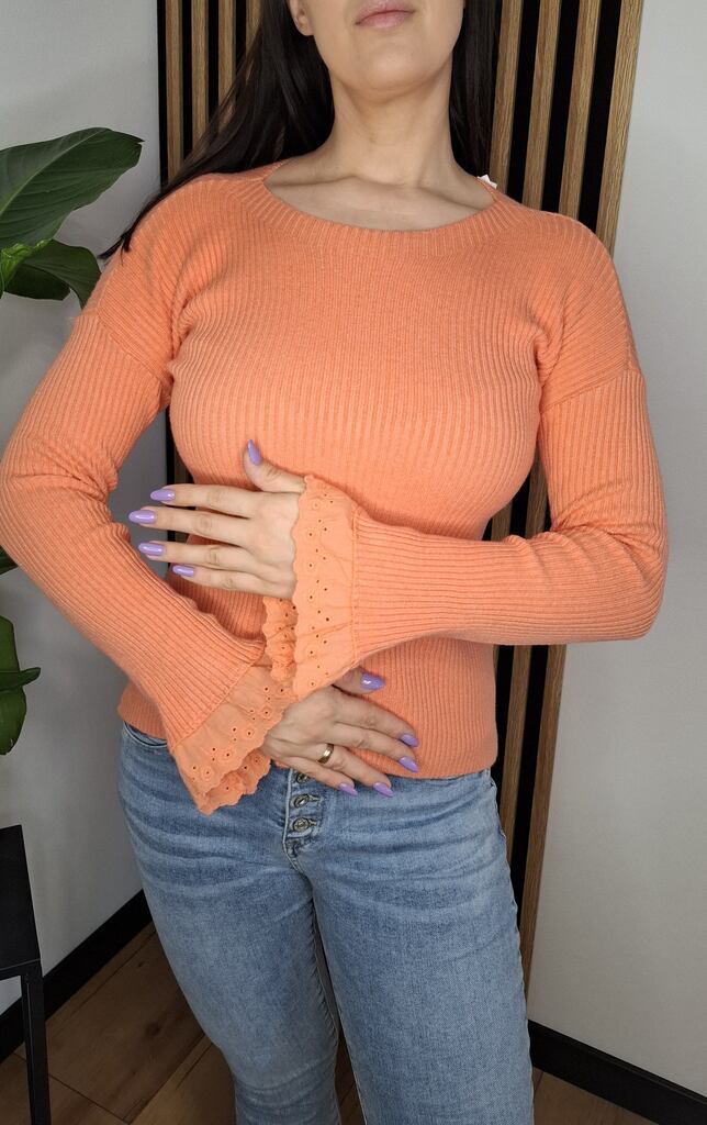 Sweter ALPACA BELL – baby alpaka, dzwonkowe rękawy morela