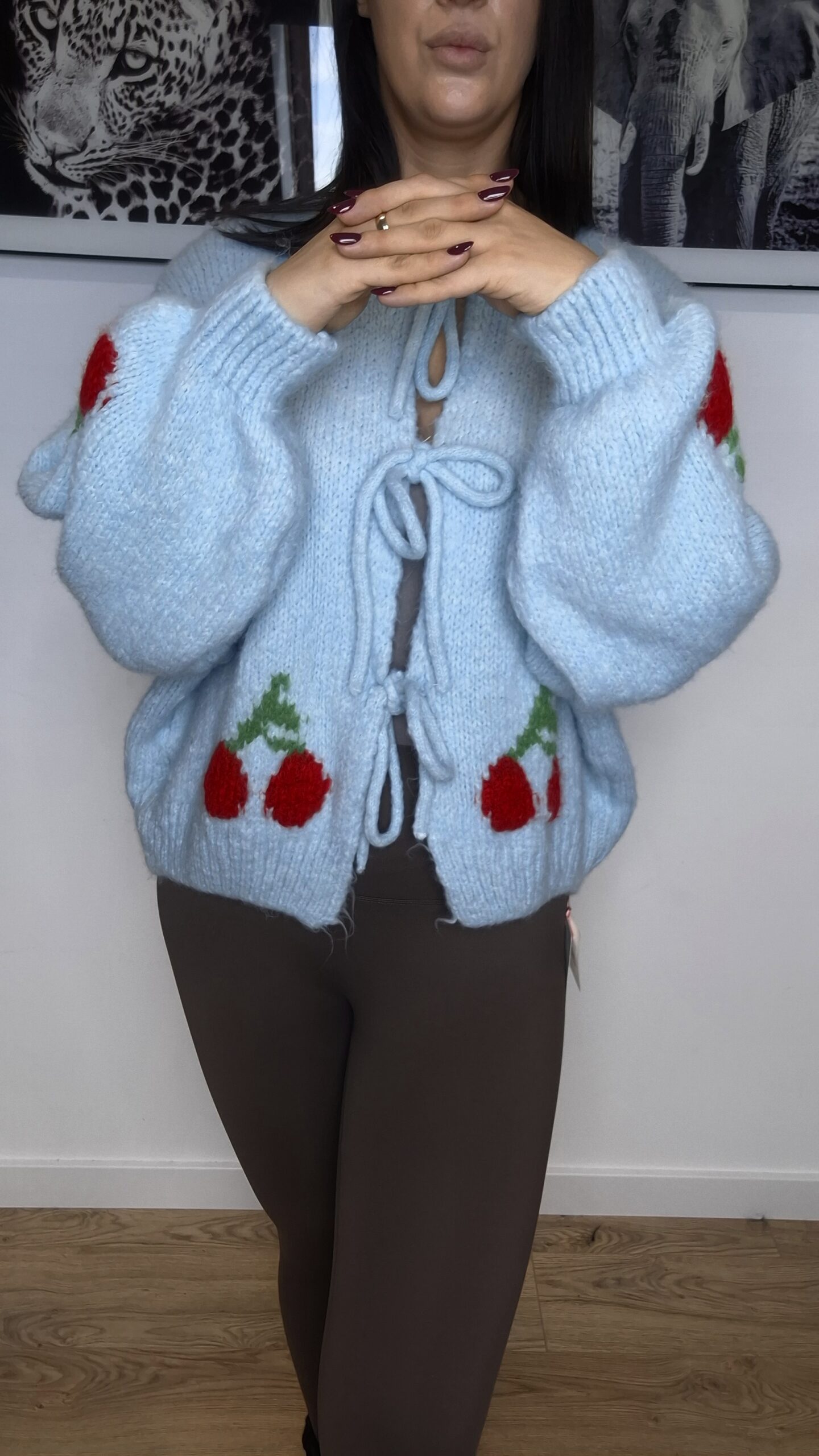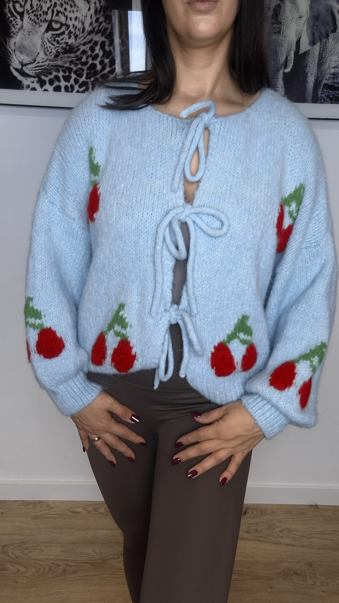 Sweter z wełną z wisienkami to urocza i ciepła propozycja, która łączy w sobie stylowy wygląd z wyjątkową funkcjonalnością. Wykonany z grubej wełny, ten sweter oferuje doskonałą ochronę przed zimnem, zachowując przy tym komfort noszenia. Grubość materiału sprawia, że sweter jest miękki, ale jednocześnie mocny i trwały, a przy tym bardzo ciepły, idealny na chłodniejsze dni.