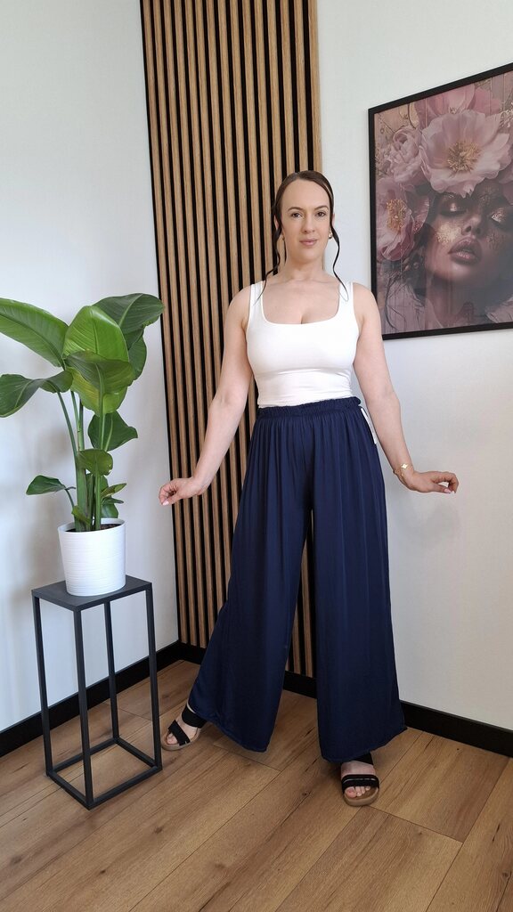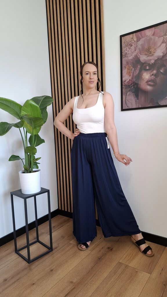 Modne spodnie na gumce, które podbiły trendy! Wykonane w 100% z lekkiej, przewiewnej wiskozy – idealne na cieplejsze dni. Luźny, rozszerzany krój i zwiewny materiał sprawiają, że pięknie układają się w ruchu.